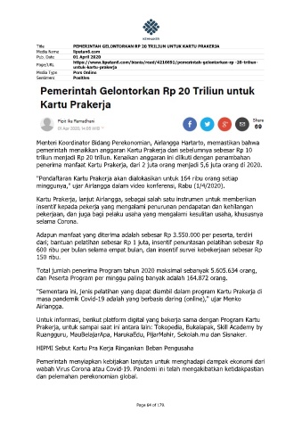 Title PEMERINTAH GELONTORKAN RP 20 TRILIUN UNTUK KARTU PRAKERJA