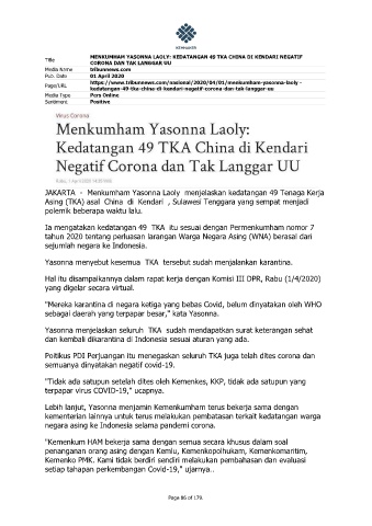 Title MENKUMHAM YASONNA LAOLY: KEDATANGAN 49 TKA CHINA DI KENDARI NEGATIF