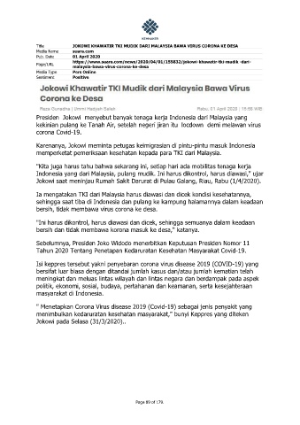 Title JOKOWI KHAWATIR TKI MUDIK DARI MALAYSIA BAWA VIRUS CORONA KE DESA