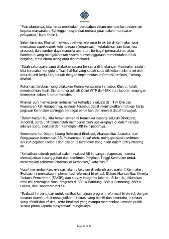 Evaluasi ini mencakup implementasi reformasi birokrasi, Sistem Akuntabilitas Kinerja