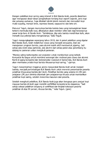 maupun barista di Aceh agar memiliki serfitifikat kompetensi ke depannya. "Jadi