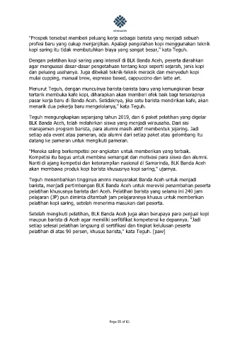 maupun barista di Aceh agar memiliki serfitifikat kompetensi ke depannya. "Jadi