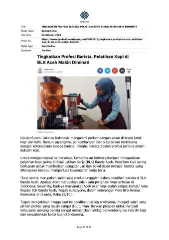 Title TINGKATKAN PROFESI BARISTA, PELATIHAN KOPI DI BLK ACEH MAKIN DIMINATI