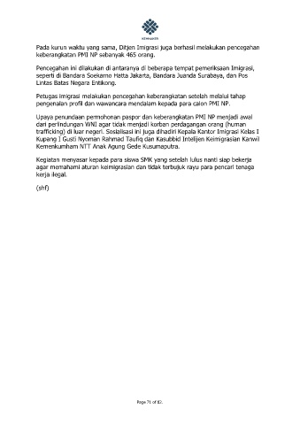 Upaya penundaan permohonan paspor dan keberangkatan PMI NP menjadi awal