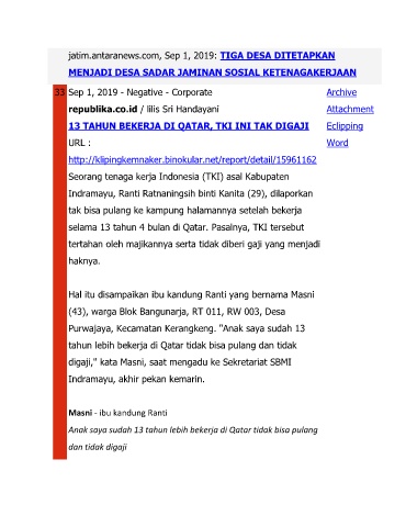 selama 13 tahun 4 bulan di Qatar. Pasalnya, TKI tersebut
