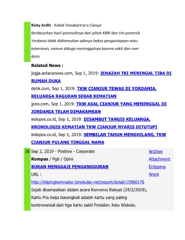 detik.com, Sep 1, 2019: TKW CIANJUR TEWAS DI YORDANIA,