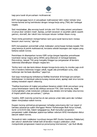 KSPI menganggap buruh di perusahaan multinasional lebih rentan tertular virus