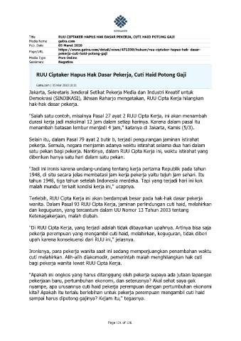 wanita. Dalam Pasal 93 RUU Cipta Kerja, jaminan perlindungan cuti haid, melahirkan