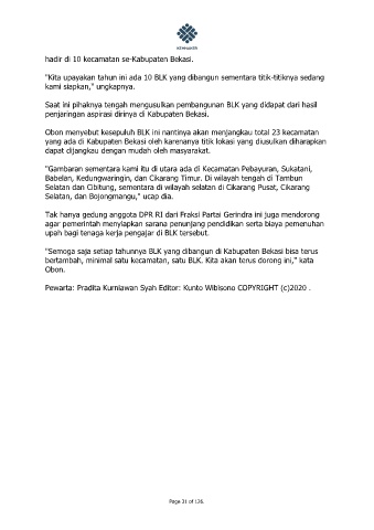 hadir di 10 kecamatan se-Kabupaten Bekasi.