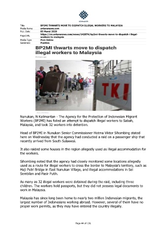 Workers (BP2MI) has foiled an attempt to dispatch illegal workers to Sabah,