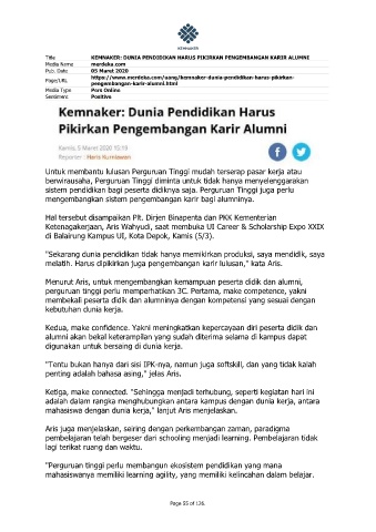 Title KEMNAKER: DUNIA PENDIDIKAN HARUS PIKIRKAN PENGEMBANGAN KARIR ALUMNI