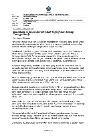 Title INVESTASI DI JAWA BARAT TAK SSIGNIFIKAN SERAP TENAGA KERJA