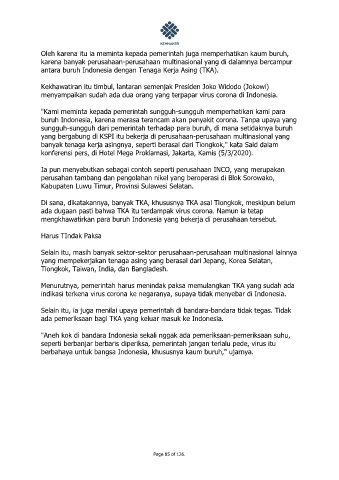 buruh Indonesia, karena merasa terancam akan penyakit corona. Tanpa upaya yang