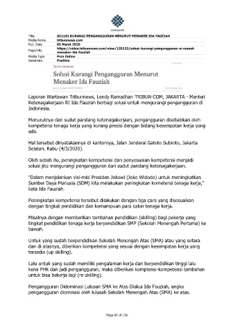 Title SOLUSI KURANGI PENGANGGURAN MENURUT MENAKER IDA FAUZIAH
