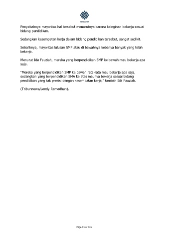 pendidikan yang tak presisi dengan kesempatan kerja," tambah Ida Fauziah.