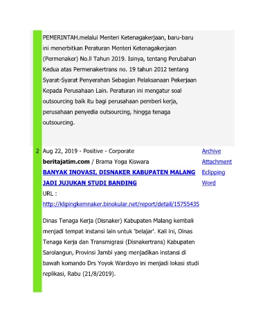 BANYAK INOVASI, DISNAKER KABUPATEN MALANG Eclipping