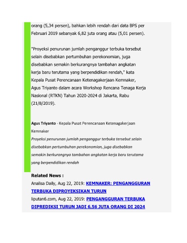 liputan6.com, Aug 22, 2019: PENGANGGURAN TERBUKA