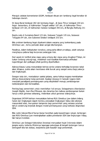 Organisasi JATAM bahkan menyatakan bahwa RUU Omnibus Law dalam bidang