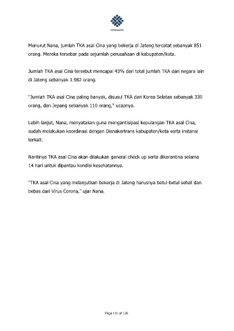 Menurut Nana, jumlah TKA asal Cina yang bekerja di Jateng tercatat sebanyak 851