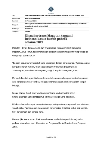 Title DISNAKERTRANS MAGETAN TANGANI BELASAN KASUS BURUH PABRIK SELAMA 2019