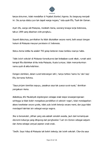 Akibatnya, Efa Maulidiyah digolongkan sebagai anak tanpa kewarganegaraan