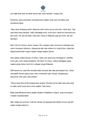 Card) atau kartu tanda penduduk, Efa diberi IC merah, artinya dianggap warga