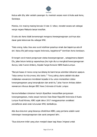 sini. Kalau Efa jadi warga negara Indonesia, bagaimana?" demikian Asma beralasan.
