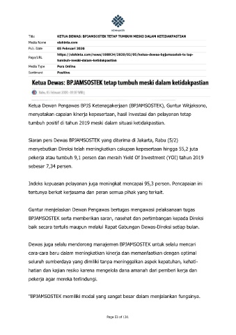 Title KETUA DEWAS: BPJAMSOSTEK TETAP TUMBUH MESKI DALAM KETIDAKPASTIAN