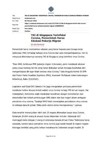 Title TKI DI SINGAPURA TERINFEKSI CORONA, PEMERINTAH HARUS EDUKASI PEKERJA MIGRAN