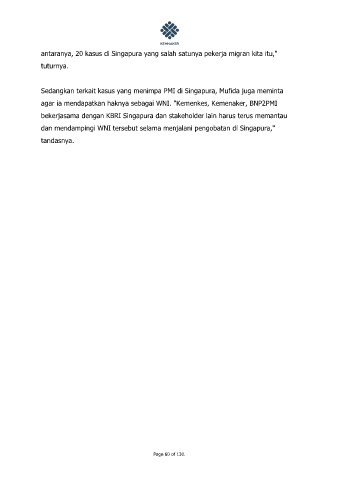 Sedangkan terkait kasus yang menimpa PMI di Singapura, Mufida juga meminta