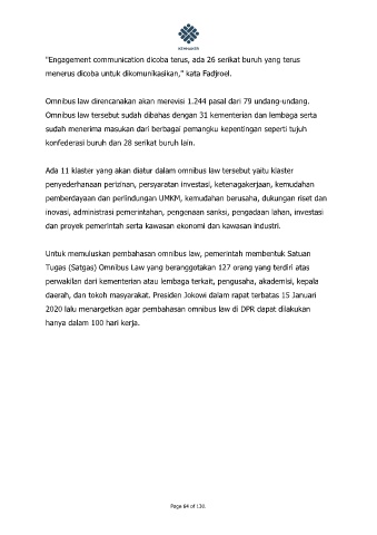 2020 lalu menargetkan agar pembahasan omnibus law di DPR dapat dilakukan