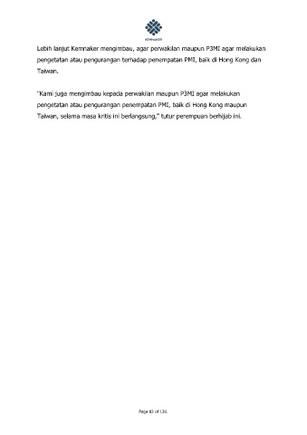 pengetatan atau pengurangan terhadap penempatan PMI, baik di Hong Kong dan