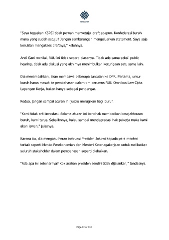 "Saya tegaskan KSPSI tidak pernah menyetujui draft apapun. Konfederasi buruh