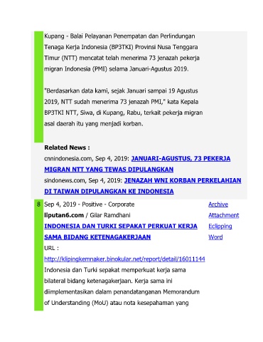cnnindonesia.com, Sep 4, 2019: JANUARI-AGUSTUS, 73 PEKERJA