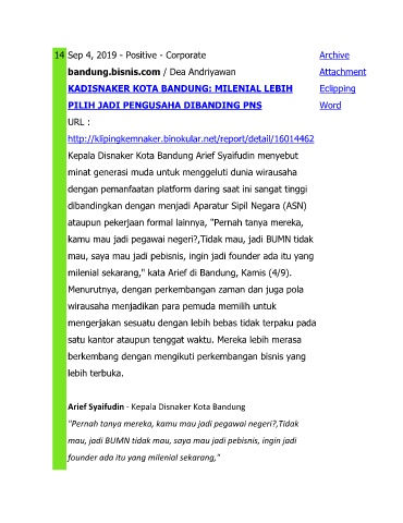 KADISNAKER KOTA BANDUNG: MILENIAL LEBIH Eclipping