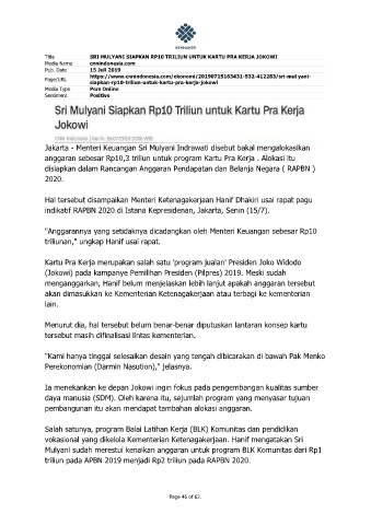 Title SRI MULYANI SIAPKAN RP10 TRILIUN UNTUK KARTU PRA KERJA JOKOWI