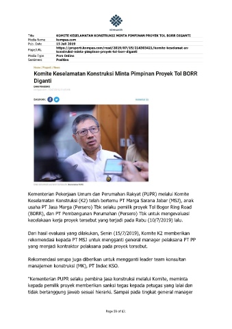 Title KOMITE KESELAMATAN KONSTRUKSI MINTA PIMPINAN PROYEK TOL BORR DIGANTI