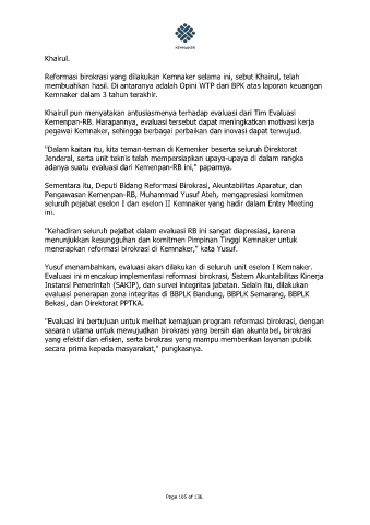 Evaluasi ini mencakup implementasi reformasi birokrasi, Sistem Akuntabilitas Kinerja