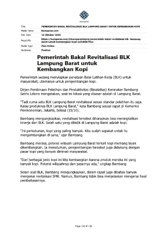 Title PEMERINTAH BAKAL REVITALISASI BLK LAMPUNG BARAT UNTUK KEMBANGKAN KOPI