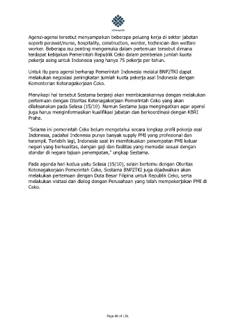 Ketenagakerjaan Pemerintah Ceko, Sestama BNP2TKI juga dijadwalkan akan