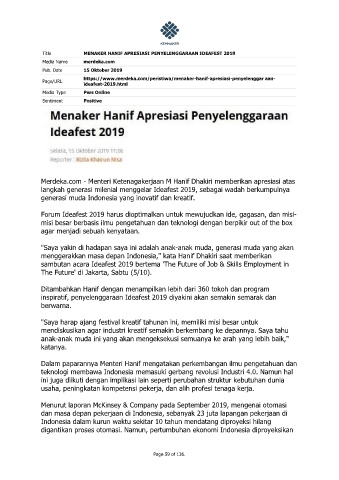 Title MENAKER HANIF APRESIASI PENYELENGGARAAN IDEAFEST 2019