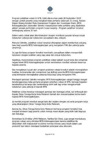 Program pelatihan vokasi di NTB, telah diluncurkan pada 28 September 2019