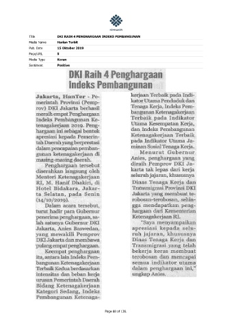 Title DKI RAIH 4 PENGHARGAAN INDEKS PEMBANGUNAN Media Name Harian Terbit Pub. Date 15 Oktober 2019 Page/URL 5 Media Type Koran Sentiment Positive Page 68 of 136.