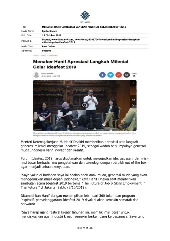 Title MENAKER HANIF APRESIASI LANGKAH MILENIAL GELAR IDEAFEST 2019