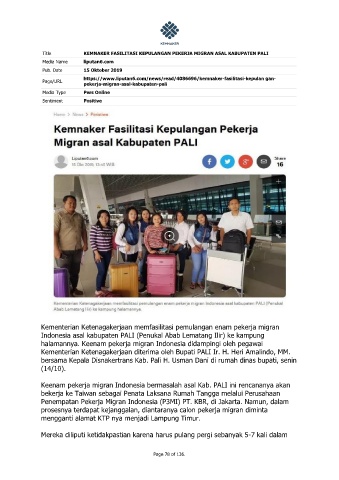 Title KEMNAKER FASILITASI KEPULANGAN PEKERJA MIGRAN ASAL KABUPATEN PALI
