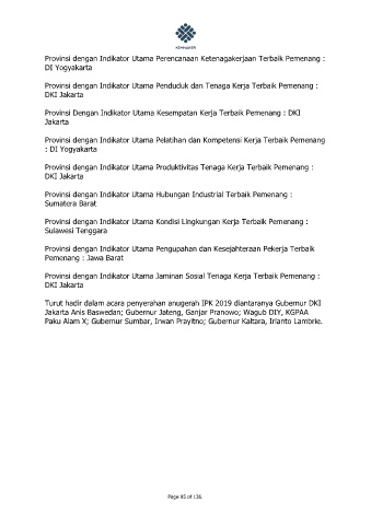 Provinsi dengan Indikator Utama Hubungan Industrial Terbaik Pemenang :