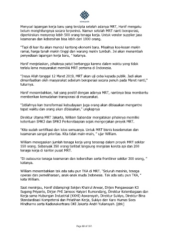 Menyoal lapangan kerja baru yang tercipta setelah adanya MRT, Hanif mengaku