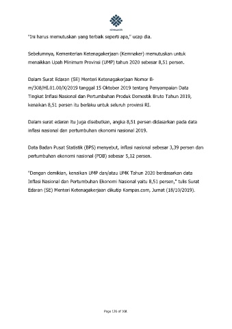 "Dengan demikian, kenaikan UMP dan/atau UMK Tahun 2020 berdasarkan data