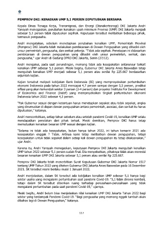 Meski begitu, Andri belum bisa menjelaskan nilai kenaikan UMP DKI Jakarta Tahun 2022 bagi