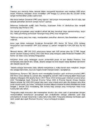 depan. Pasalnya, kebijakan Anies menaikkan UMP hingga 5,1 persen atau Rp 225.667 dinilai